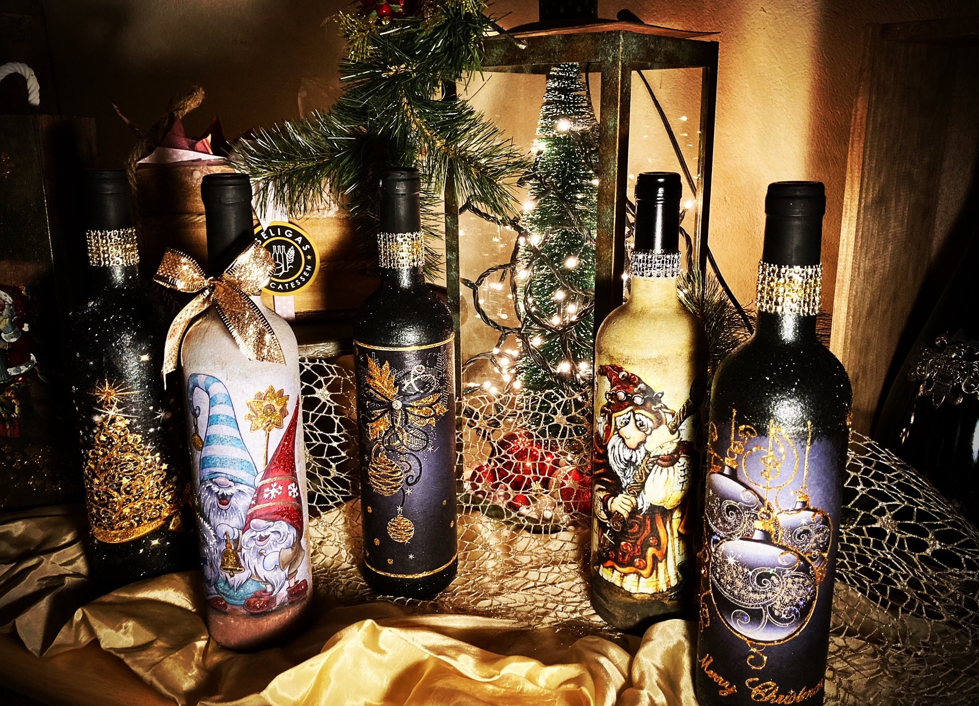 Εμφιαλωμένο κρασί με χριστουγεννιάτικα σχέδια